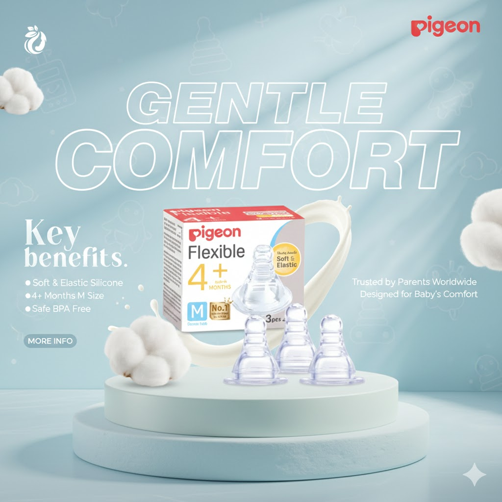 مرونة فائقة تسمح بتمدد الحلمة مع حركة فم الطفل الطبيعية.