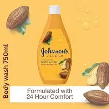 جونسون فيتا ريتش سائل استحمام 250 مل مع خلاصة زبدة الكاكاو، يمنح البشرة الجافة ترطيبًا يدوم 24 ساعة، مع رغوة غنية ونعومة طبيعية.