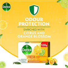 صابون ديتول فريش بالحمضيات يمنحك حماية من الجراثيم وانتعاش يدوم. اطلبه الآن داخل السعودية.