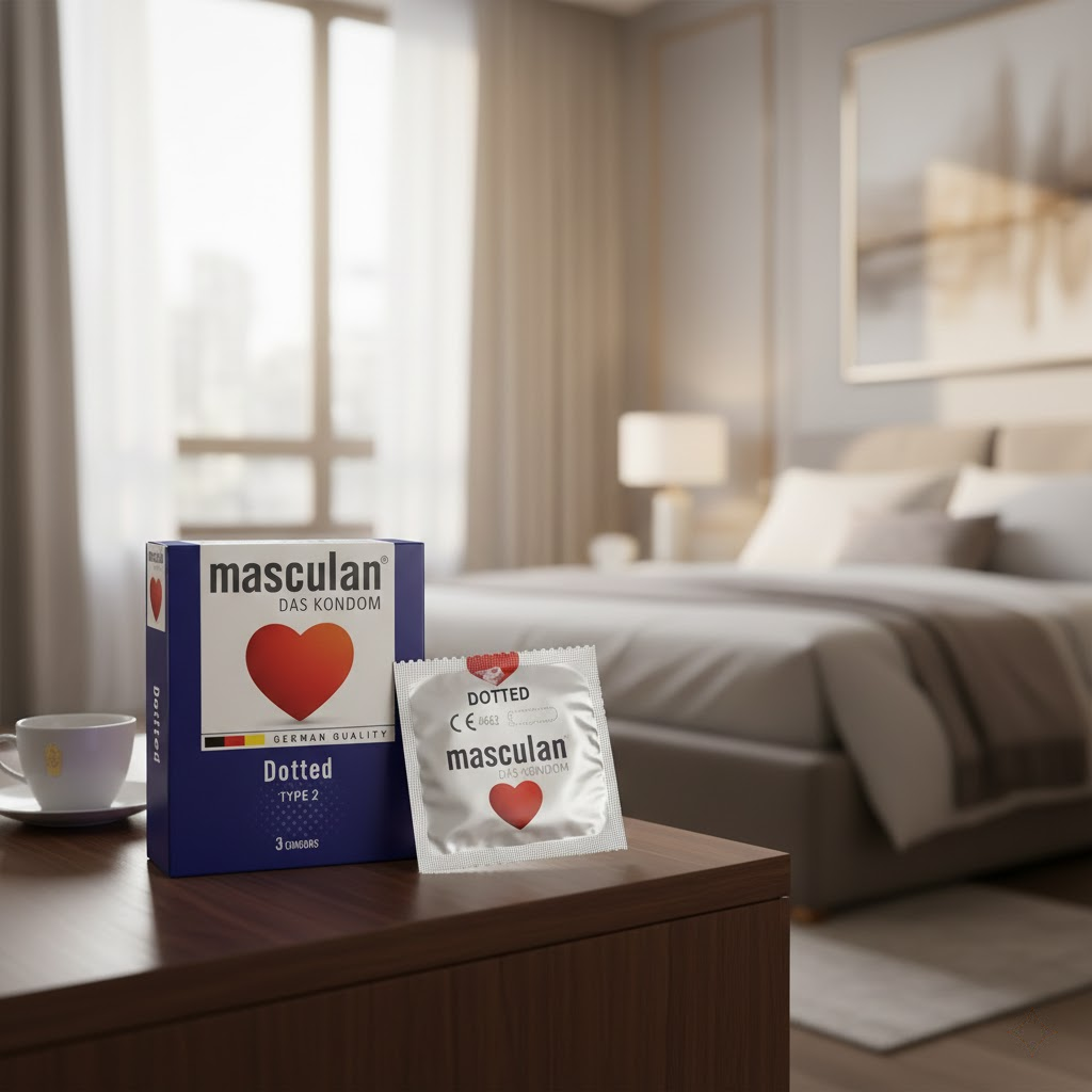 ماسكولان واقي ذكري محبب 10 قطع هو واقٍ ذكري طبي عالي الجودة يجمع بين الحماية الموثوقة والتجربة الحسية المحبّبة أثناء اللحظات الحميمة. يتميز هذا الواقي الذكري بسطح محبّب (نقاط مرتفعة) يضيف إحساسًا إضافيًا يحفّز المتعة لكلا الشريكين، مع الحفاظ على أداء قوي في الوقاية من الحمل غير المرغوب فيه والأمراض المنقولة جنسيًا عند الاستخدام الصحيح. مصنوع من مطاط طبيعي مرن ومزلق خفيف لتوفير انسيابية مريحة وطبيعية، ما يجعله خيارًا مثاليًا للمتسوق السعودي الذي يبحث عن حماية آمنة ومتعة محسّنة في حياته الحميمة.