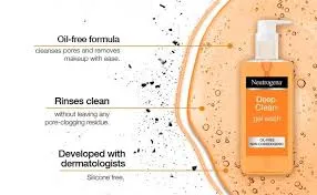 جل نيوتروجينا ديب كلين ينظف البشرة بعمق، يزيل الشوائب والزيوت والخلايا الميتة، ويحافظ على نعومة وانتعاش البشرة لجميع أنواعها يوميًا.