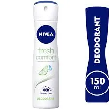 يعمل نيفيا مزيل العرق بخاخ فريش كومفورت على التخلص من رائحة العرق المزعجة بشكل قوي وفعال و تنعيم وتفتيح منطقة تحت الذراعين حماية ضد التعرق وعناية نيفيا اللطيفة لمدة 48 ساعة.