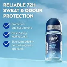 إذا كنت تبحث عن مزيل عرق رول‑أون يمنحك حماية قوية ضد التعرق ورائحة الجسم غير المرغوبة ويمنحك شعورًا بالانتعاش طوال اليوم، فإن نيفيا رول‑أون مزيل رائحة العرق فريش اوشن 50 مل يقدم لك الحل المثالي. يُعد هذا المنتج من أشهر مزيلات العرق في السوق، ويتميز بتركيبة لطيفة على البشرة تعمل على تقليل التعرق والروائح الكريهة بفاعلية، مع رائحة منعشة تدوم حتى 48 ساعة.