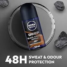 استخدم نيفيا رول‑أون مزيل العرق للرجال ديب بلاك كاربون إسبريسو 50 مل كجزء من روتين النظافة اليومية بعد الاستحمام لتحقيق أقصى حماية.