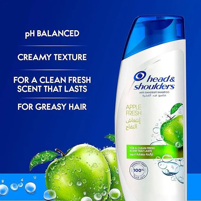 احصل على شعر خال من القشرة بنسبة 100% مع شامبو هيد اند شولدرز بانتعاش التفاح الأخضر 400 مل. حماية ثلاثية المفعول، ترطيب عميق، ورائحة منعشة تدوم. اطلبه الآن.