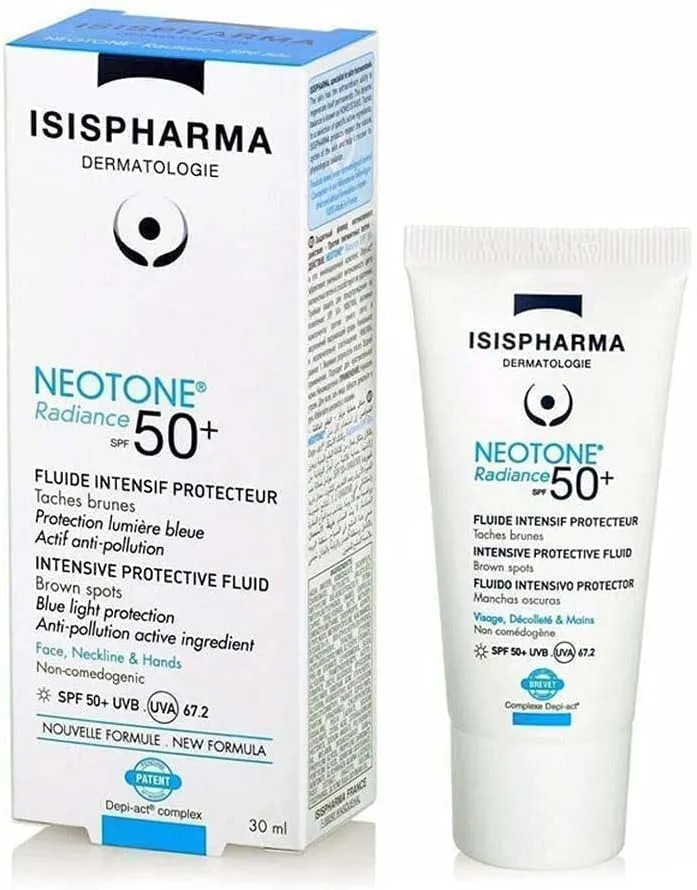 وحدي لون بشرتك واحمِها من البقع مع إيزيس فارما نيوتون راديانس SPF 50+. غني بعرق السوس والنياسيناميد لإشراقة وحماية يومية فائقة. احصلي عليه الآن.