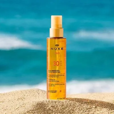 تسوق زيت نوكس صن المسرع للتسمير بحماية SPF 30 للوجه والجسم. احصلي على لون برونزي ساحر ورائحة استوائية مع حماية فرنسية متطورة ضد الشيخوخة المبكرة.