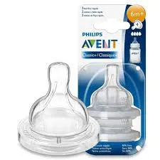 عبوة مزدوجة من حلمات رضاعة فيليبس أفنت Classic+ مصممة للأطفال من عمر شهر واحد وما فوق، لتوفير رضاعة آمنة ومريحة وتقليل الانزعاج أثناء التغذية. الحلمات مزودة بتصميم مضاد للمغص يعمل على تقليل دخول الهواء إلى معدة الطفل، مما يساعد في تقليل المغص والانزعاج أثناء الرضاعة. كما تأتي الحلمات بنسيج مخطط يمنع انكماشها أثناء الاستخدام، لضمان تدفق سلس ومستمر للحليب. هذه الحلمات مصممة خصيصًا للاستخدام مع زجاجات فيليبس أفنت Classic لتوفير تجربة رضاعة طبيعية وآمنة.