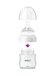 3. تُملأ الزجاجة بالحليب أو التركيبة المناسبة لعمر الطفل، وتُغلق بإحكام لمنع التسرب.